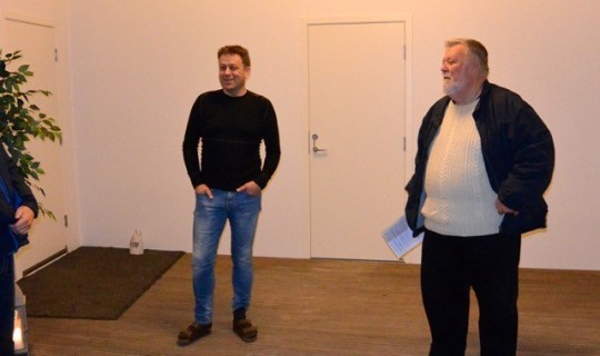 Geir forteller om byggeprosessen før døren til husets boligkompleks åpnes for klubbens medlemmer.