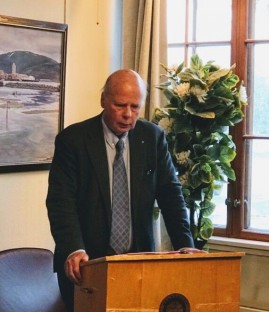 Kveldens foredragsholder var tidligere ambassadør Bjørn Skogmo. Han er fra Spillum og er utdannet cand. polit og har vært i utenrikstjenesten siden 1969. Han har også studert engelsk og fransk.