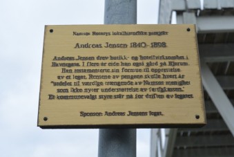 Andreas Jensen kom til Namsos fra Strinda i 1860-åra. Her åpnet han bakeri, butikk og hotell i Havnegata. Han eide gård på Bjørum (Hildrum-Bjørum) og døde her i 1898. I sitt testamente bestemte han at det skulle opprettes et legat av hans formue. "Værdig trængende" kunne søke legatet om penger. Legatet består ennå (2015). Namsos kommunestyre oppnevner styre for legatet.