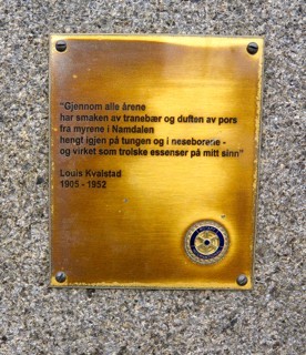 Namsos kunstforening æret i 1959 Louis Kvalstads minne med bysten i bronse utført av bildekunstneren Hjalmar Hansen. På granittsokkelen i Kvalstadparken står dette utdraget av diktet Cafe noir: